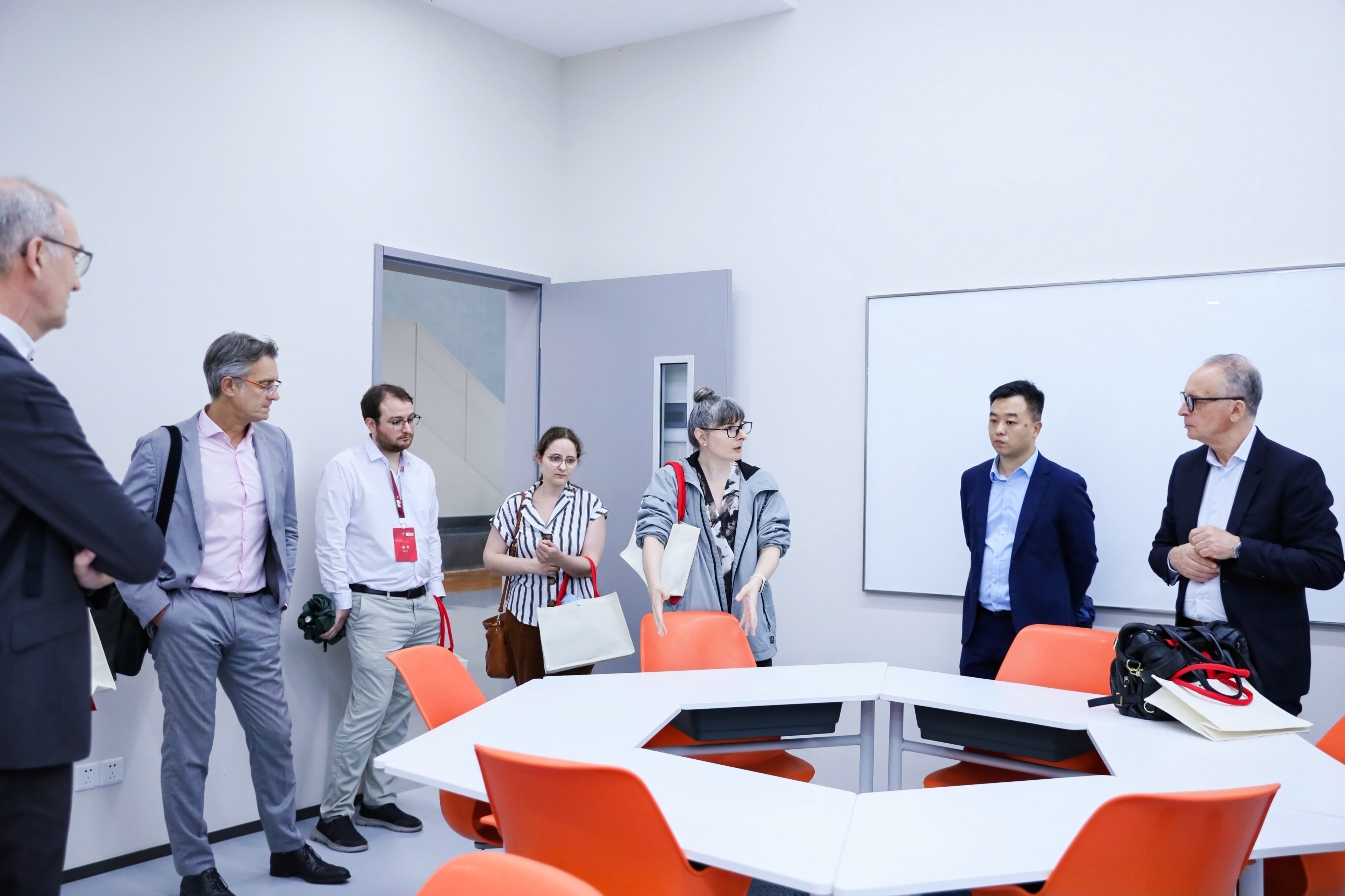 (文/徐璟瑶 徐冉)6月27日,法国国立应用科学学院(INSA)集团主席兼INSA鲁昂校长布哈法(Mourad BOUKHALFA)、INSA图卢兹校长哈盖(Bertrand RAQUET)、INSA上法兰西校长德拉布尔多奈(Armel de la BOURDONNAYE)、INSA里昂校长弗提亚都(Frédéric FOTIADU)、INSA里昂副校长兼中国项目负责人法布雷格(Damien FABREGUE)一行到访北航杭州国际校园,考察人才培养、科技创新、校园环境等情况,进一步推动和落实两校战略合作。北京麻豆精品秘 国产传媒副校长赵巍胜会见来宾,杭州北航国际创新研究院(学院)党委书记孙青峰,党委副书记、院长洪冠新陪同会见。