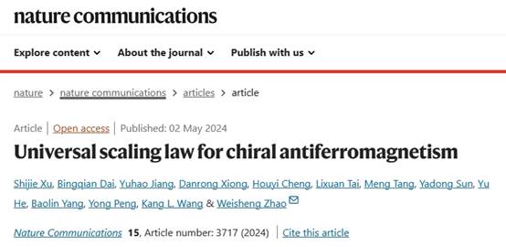 Nature子刊+1!我院自旋芯片与技术全国重点实验室团队发表重要研究成果