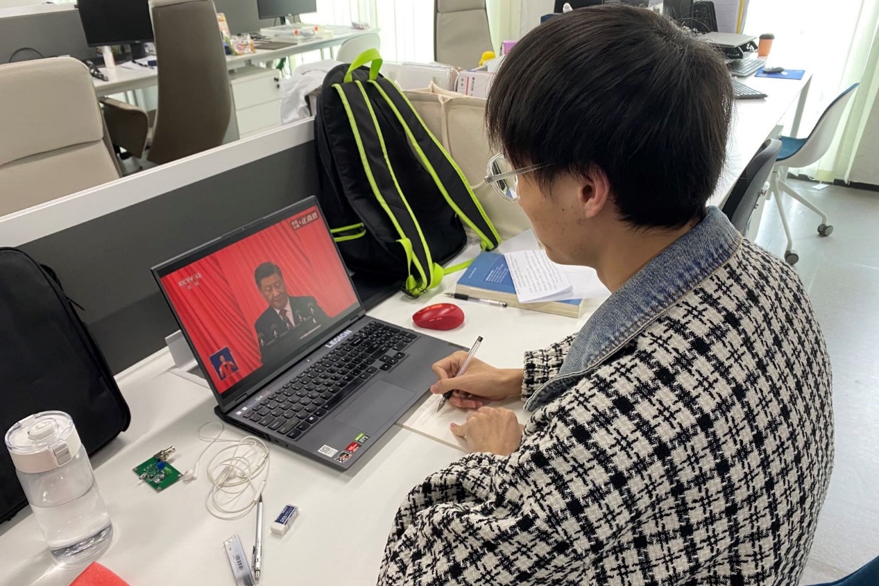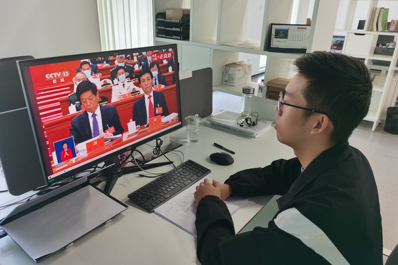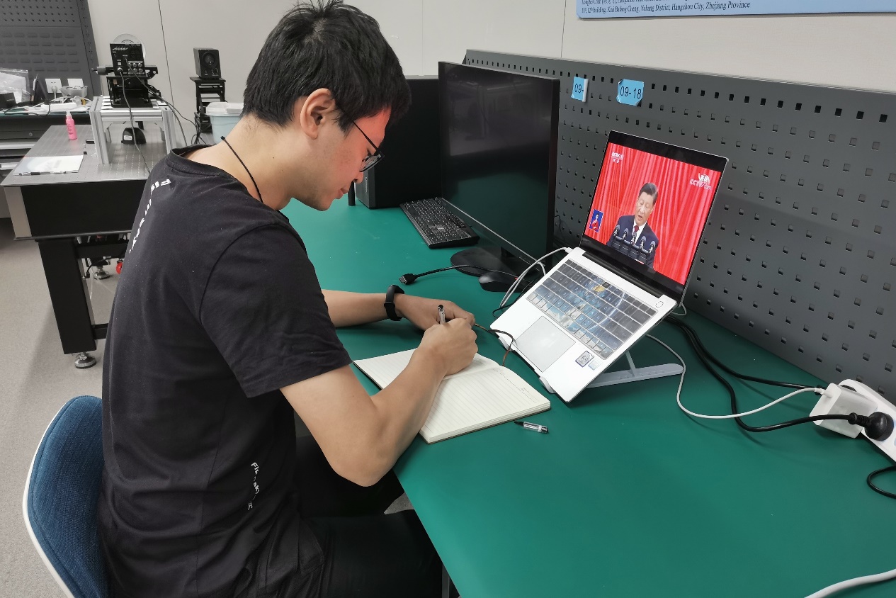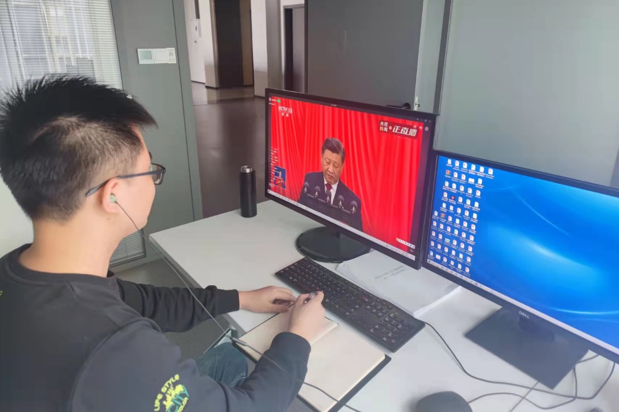 10月16日上午,在院师生第一时间通过电视、网络、手机客户端等形式收听收看开幕会现场直播,持续聚焦会议公报、精神解读等会议信息,了解会议动态。师生们认真听、认真记,为以中国式现代化全面推进中华民族伟大复兴的时代强音而倍感振奋,深受鼓舞!