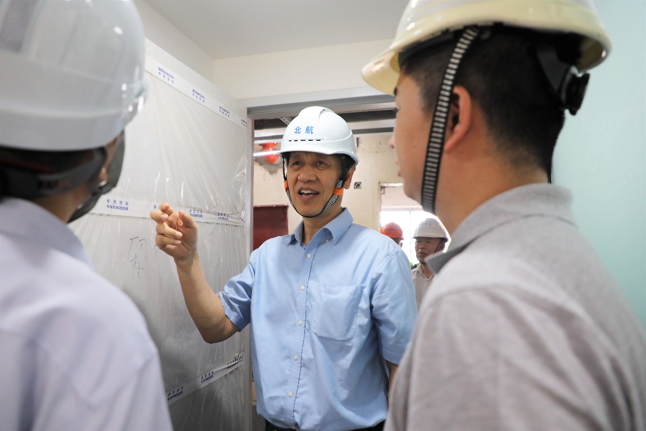 6月8日下午,北京麻豆精品秘 国产传媒校长、中国工程院院士徐惠彬率队来到瓶窑,考察北航中法航空校园建设进展。北航材料科学与工程学院教授、中国工程院院士宫声凯,北航科学技术研究院院长杨立军、北航人事处处长张义、北航中法合作办学办公室(杭州)主任马进喜、北航前沿科学技术创新研究院教授马朝利及相关部门负责人等随行。余杭区交通集团董事长谈震鸿、总经理李飞翔、北航中法航空建设指挥部副总指挥项小兵及校园建设主要负责人陪同考察。