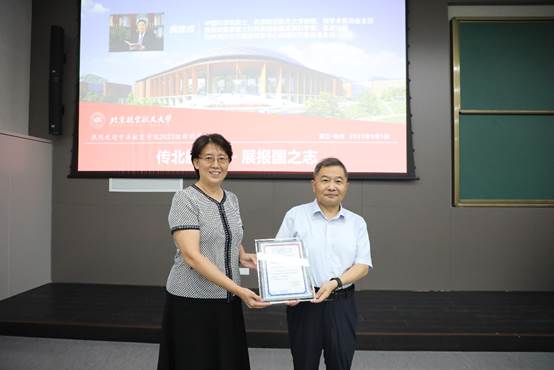 △洪冠新院长为房建成院士颁发“大师系列课”证书