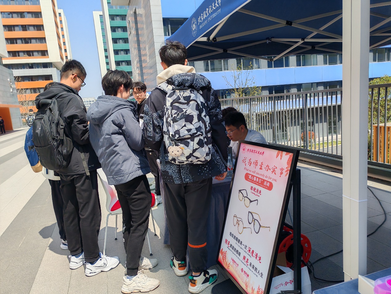 “眼睛是心灵的窗户。”楼宇客服们耐心细致地为有需要的师生清洗眼镜,并积极宣传爱眼护眼小技巧,普及生活中保护眼睛的小知识和日常眼镜护理的注意事项。