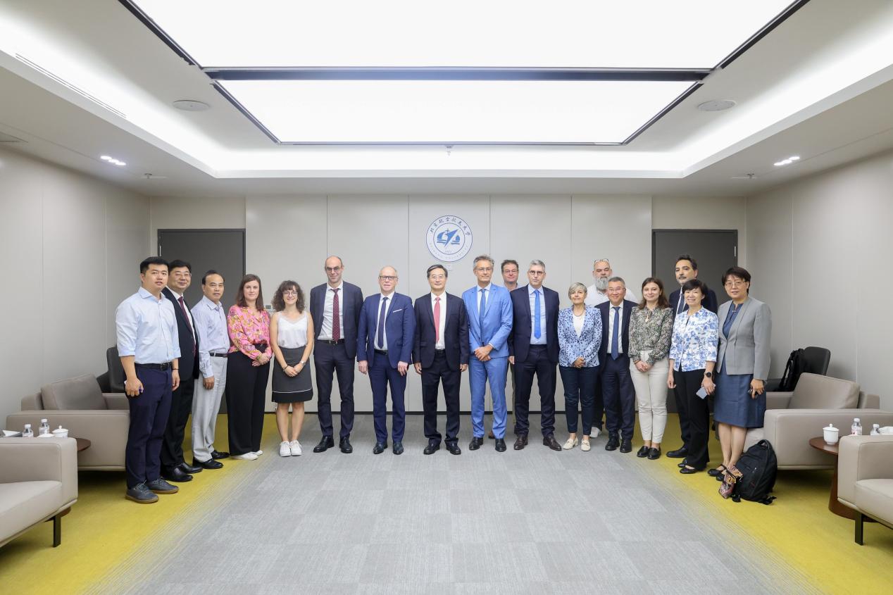 开学典礼前,王云鹏会见尚苏、哈盖一行,围绕深化人才培养、科学研究等方面的务实合作展开友好交流。尚苏表示,中法航空学院的运行发展已平稳迈入第二年,欣喜地看到今年学院招生又迈上了新台阶,各科研实验室建设也已颇具规模,对此感到无比惊喜和欣慰。哈盖对校园日新月异的变化表示惊叹,他强调,INSA集团将积极推动两校在人才培养和科学研究方面的全方位合作,推动更多项目落地北航杭州国际校园,期待两校不断拓展合作边界,探索更多合作机遇。王云鹏表示,北航与ENAC、INSA集团有着深厚的合作基础,取得了诸多成果。希望双方在已有合作的基础上,全面拓展合作领域及范围,共同推动国际卓越工程师培养机制和模式创新。